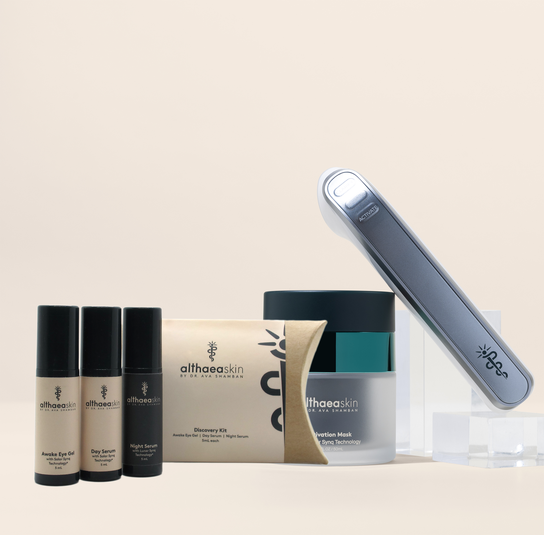 Experience Althaea Skin’s complete day-to-night transformation ritual, designed to sync with your skin’s natural circadian rhythms and visibly rewind signs of fatigue and aging.